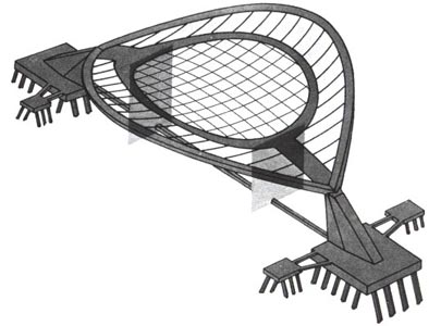 Gebaut wurde ein fauler Kompromiss, der die ursprüngliche Form mit Hilfe einer komplizierten Hilfskonstruktion nur imitierte, nun aber genehmigungsfähig war. Ans Innendach über dem Auditorium wurde ein Außendach angehängt. Die großen Bögen, einst die Haupttragglieder, mussten nun selber getragen werden. "Verstößt gegen die naturgegebenen Prinzipien der Statik und Konstruktion", urteilte der große Konstrukteur Pier Luigi Nervi. |
