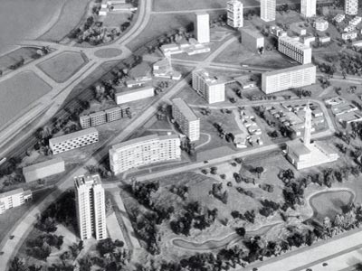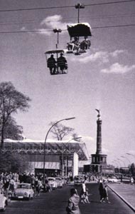 Modell der „Interbau“: Zwanglose Sessellifte über dem Ausstellungsgelände |
